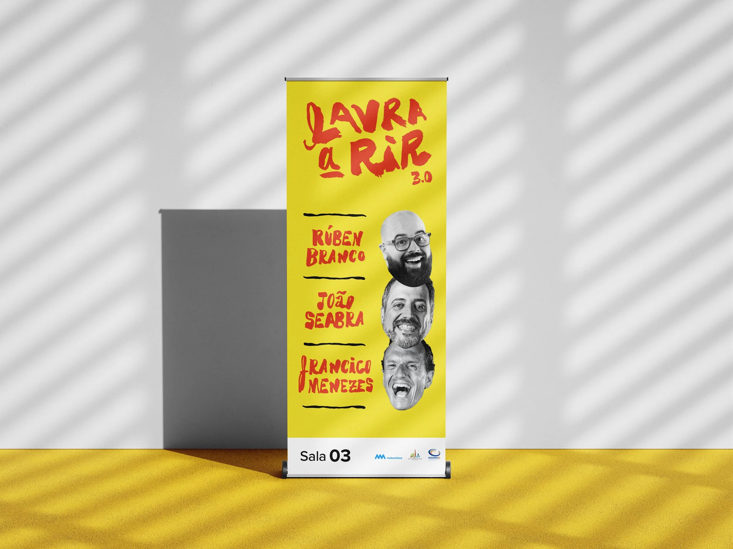 with expressive and dynamic lettering that serves as the main element in communicating the idea of comedy. Colors, lettering, and photography are the three elements that make the identity unique, subsequently adapted to different formats.
